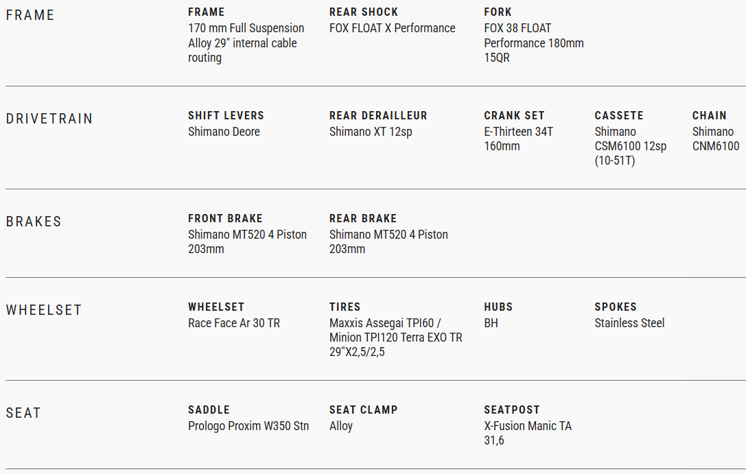 Aluminiový rám, 29/29", zdvihy 170/180mm FOX PERFORMANCE, Shimano XT / Deore